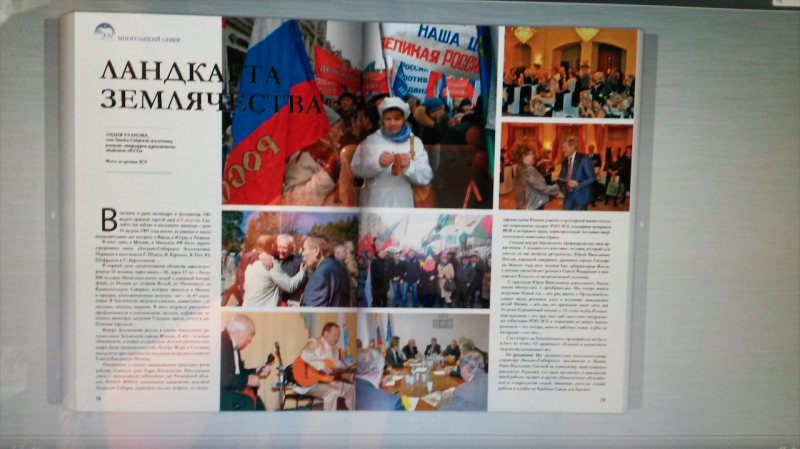 13. В первом квартале подготовлен и размещён в журнале «Север наш» (редактор член РОО ЗСЗ Валерий Гамза) материал о Западно-Сибирском Землячестве «Ландкарта Землячества» /автор – Уланова Л.В./. Журнал вышел в свет и будет подарен землякам к 9 мая.