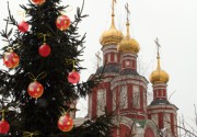 Очередной марш-бросок — и мы у дома 125! Погода точь-в-точь, как в фильме, — снег и ветер. Крайний шестой подъезд тоже точь-в-точь, как в доме номер 25. Наш фоторадист моментально включается в работу — щелк, щелк, щелк. И всё диво-дивное и чудо-чудное запечатлено. Все, что удалось снять, вы видите на снимке. Но объяснить, откуда взялись мини-ёлочки на тротуаре и шары на елке у церкви, студентка Настя Перова (прошагавшая весь маршрут в звании фоторадиста) не может. Предрождественская мистика? Нам подумалось, что день перед Рождеством так же полон чудес, как и ночь перед Рождеством. Великие писатели не врут!