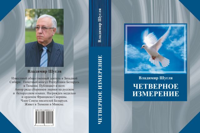 Шугля В.Ф. Четвертое измерение. Курган: ОАО «Курганская городская типография», 2013г. «Мне мимо не пройти себя», – написал Владимир Шугля в одном из своих стихотворений. И каждой поэтической строчкой он утверждает это направление в своём творчестве. В новой книге лирики автора живая без прикрас жизнь, предельная откровенность души лирического героя. Его интонацию не спутаешь ни с какой другой. Голос поэта, голос сильного человека часто начинает почти дрожать, когда он пишет о детстве, родителях, высоком чувстве любви, природе… В этот сборник вошли лучшие стихотворения поэта как совсем новые, так и прошлых лет.