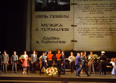 Поздравить ветеранов войны, ранее работавших в районах Западно-Сибирского нефтегазового комплекса, прибыли артисты из г. Ханты-Мансийска: Губанишев Станислав Георгиевич, проникновенно прочитавший произведение «Василий Теркин»; Герасимова Наталья Борисовна, исполнявшая песни и романсы при музыкальном сопровождении(фортепиано) Голушко Александра Анатольевича.