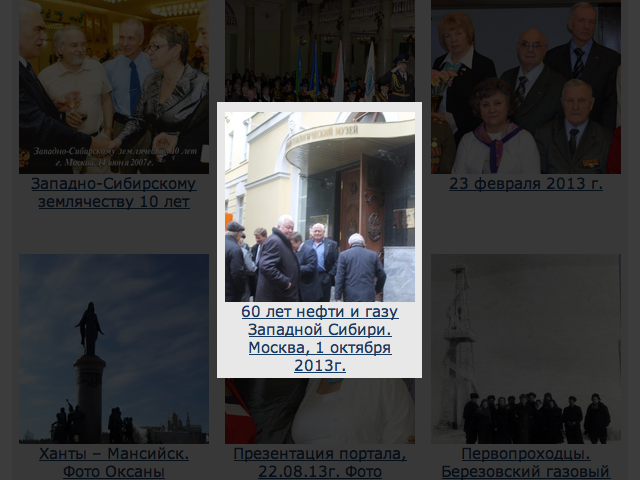 На портале Западно - Сибирского землячества, в рубрике "Фотобанк", появился новый раздел "60 лет нефти и газу Западной Сибири. Москва, 1 октября 2013г." Он включает два альбома фотографий наших землячек, Людмилы Касперовой и Светланы Прилуцких, с празднования юбилейной даты в государственном геологическом музее РАН им. В.И.Вернадского, Москва. (Организатором выступило землячество.)
