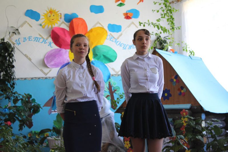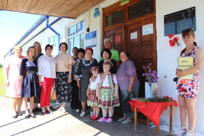 Ведущие сообщили, что 25 февраля 2015 года в рамках проекта «Согретые Сибирью» была торжественно открыта установленная на здании Знаменщиковской школы мемориальная доска в честь подвига тюменцев, сохранивших жизни эвакуированных в Сибирь детей. В тот день на митинге с приветственным словом к его участникам обратилась Л.И. Марикова – заместитель главного редактора выпущенного в 2012 году «Тюменским издательским домом» двухтомника «Согретые Сибирью». (В нём – повествование о том, как во время Великой Отечественной войны Сибирь спасала детей, эвакуированных из разных уголков страны; отдельная глава второй книги посвящена истории детских домов, работавших в войну в Сорокинском районе). Людмила Ивановна подарила Знаменщиковской школе эти книги, содержащие ценнейший местный материал для патриотического воспитания учащихся.