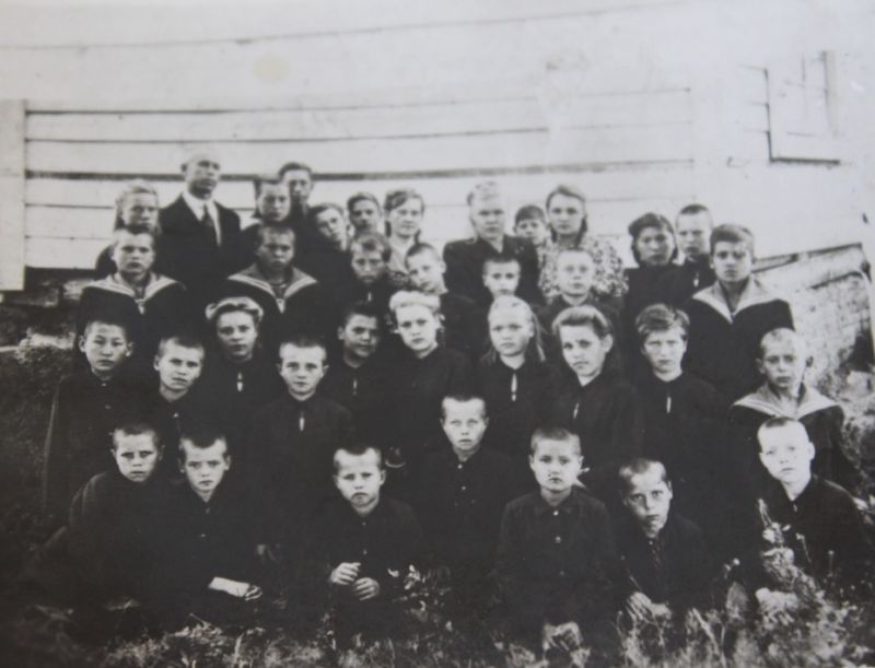 Собираясь на встречу, женщины взяли с собой фотографии из своих семейных архивов. Вот на коллективном снимке крайний слева во втором ряду снизу – Пётр Санджиев. Вера Николаевна рассказала, что отыскала этот снимок, когда прочитала в районной газете «Знамя труда» от 13 июня 2018 года материал Галины Шургчиевой «Не зря Россию матерью зовут» и увидела фотографию отца Петра, с которым, по её мнению, маленький Пётр очень похож.