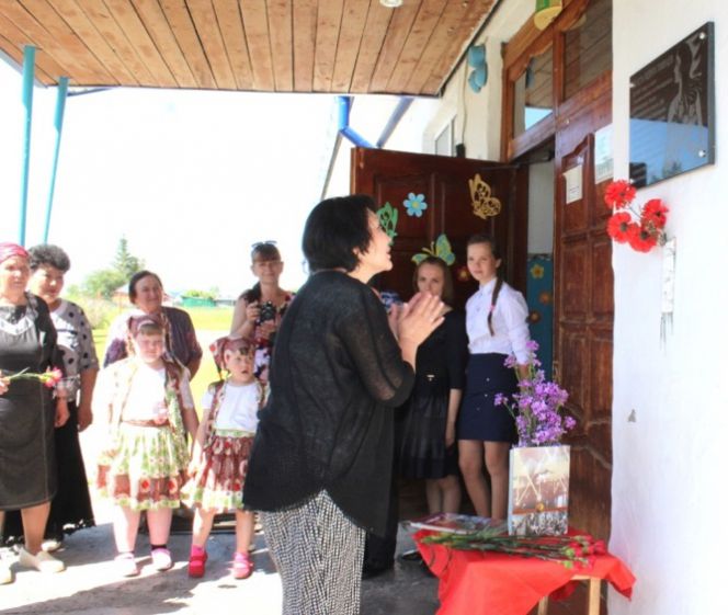 Затем ведущие Екатерина Щипцова и Анна Синеок с помощью фотопрезентации провели небольшой экскурс в историю села Знаменщиково. Галина Шургчиева, уже до этого много знавшая из рассказов отца, словно впервые, со слезами на глазах слушала рассказ об открытии на знаменщиковской территории в годы Великой Отечественной войны интерната и общежития, в которых разместили эвакуированных детей, о буднях воспитанников детского дома, об их работе в жизненно необходимом детскому дому подсобном хозяйстве.