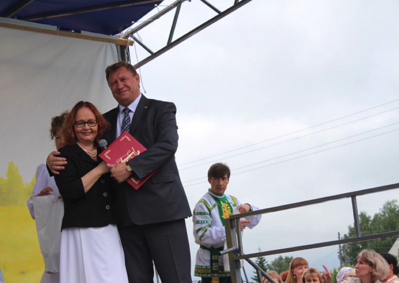 По поручению Совета землячества я зачитала поздравительный адрес, подписанный председателем Геннадием Иосифовичем Шмалем и вручила его Главе района. С поздравлениями к жителям Большого Сорокино и района обратились члены землячества Татьяна Мисюта и Юлия Коваленко. Наталья Кашникова выступила с сольным исполнением  песен в концерте.