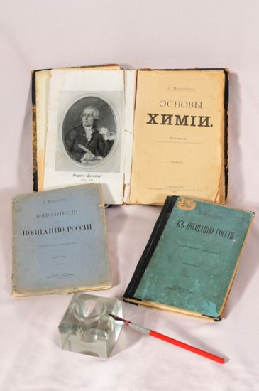 В музее ТИУ хранятся четыре прижизненных издания учебника «Основы химии»: три изданы в России и одно — в Америке (1902-1903 гг.). В экспозиции есть марки с портретом русского учёного, выпущенные в разные годы и в разных странах. Одна из них, к примеру, вышла в 2013 году в африканской Республике Кот-д’Ивуар. О всемирном признании Менделеева говорит и пятидолларовая серебряная монета, выпущенная на островах Кука в 2012 году. На ней с одной стороны — изображение королевы Елизаветы II, с другой — Дмитрия Ивановича Менделеева.