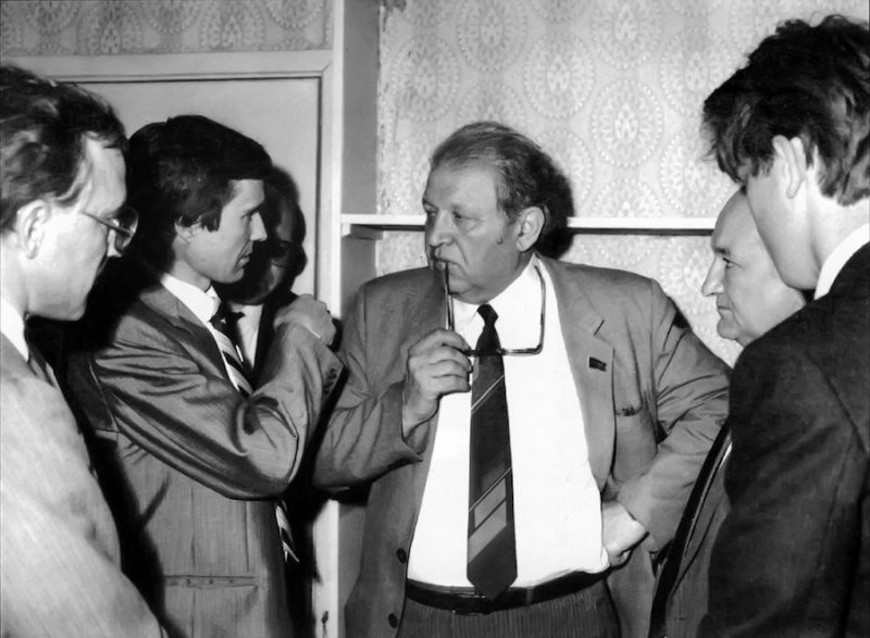 Министр нефтяной промышленности СССР В.А. Динков беседует с начальником ПО «Сургутнефтегаз» В.Л. Богдановым. Москва, Миннефтепром, 1986г. |