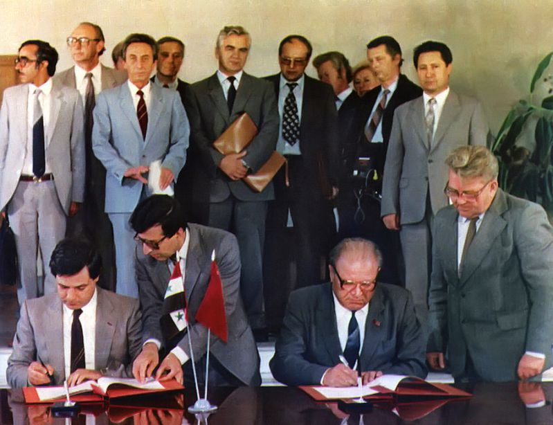 Подписание соглашения на проведение работ по разработке иракских нефтяных месторождений в районе Басры. Москва, Миннефтепром, 1985г. |