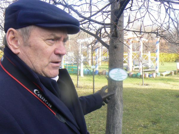 Аркадий Елфимов у липы, которую посадил известный писатель Валентин Распутин, в парке «Ермаково поле». |