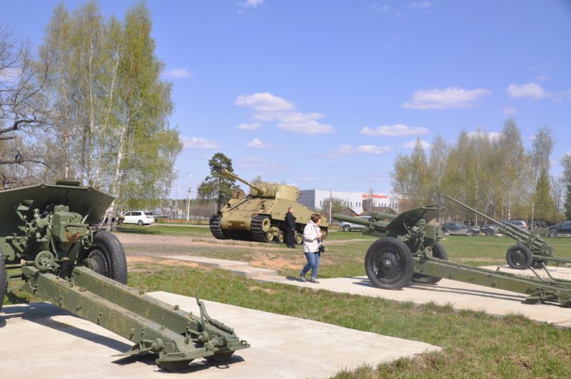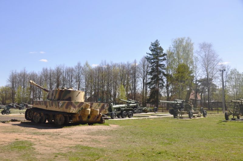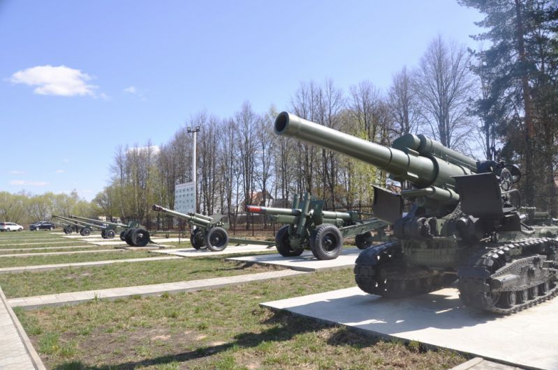 На наружной музейной площадке комплекса в Снегирях значительное место занимает экспозиция артиллерийских орудий всевозможного предназначения. От самоходных САУ и тяжелых стволов береговой артиллерии до бомбометов, зенитных и противотанковых пушек и, конечно же, минометов и полевых орудий, в том числе гаубиц.