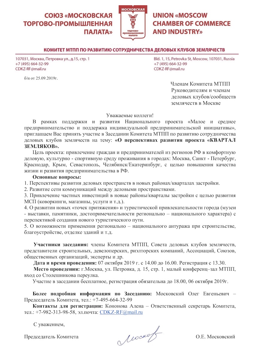 приветствие председателя