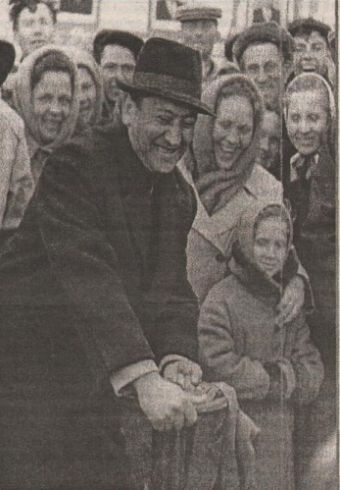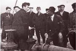 | Ф.К. Салманов открывает задвижку скважины №80, 1964 год. Фото А.Мясникова |