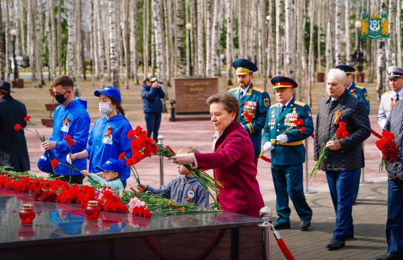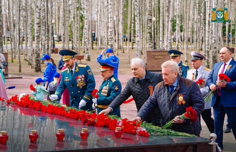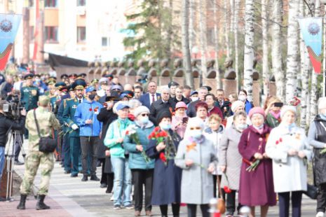 Утро 9 мая в Ханты-Мансийске началось с возложения цветов к мемориалу Славы в Парке Победы и минуты молчания в память о героях, погибших во имя Отечества.