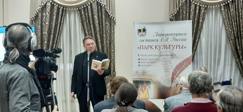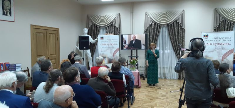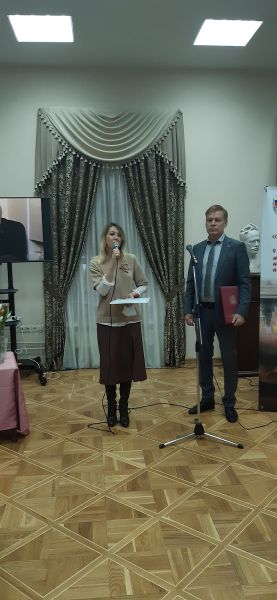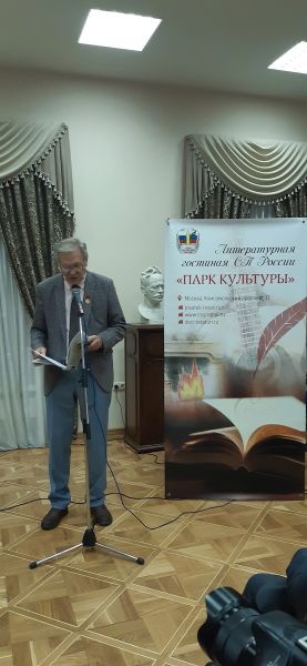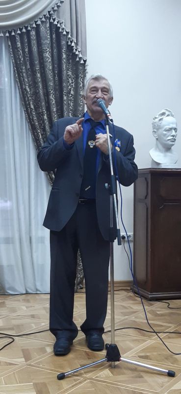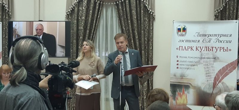 Исполнительный директор землячества челябинцев Мария Гарелина в своём выступлении поздравила юбиляра и поблагодарила Союз писателей России в лице ведущей литературного вечера - поэтессы Нины Дьяковой - за объединение организаций и ценность, которую несёт чувство коллективизма.