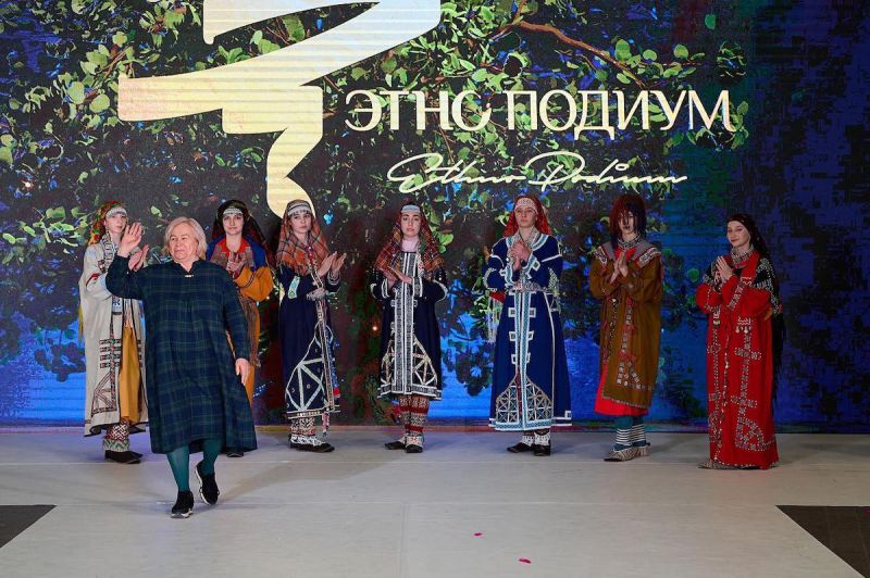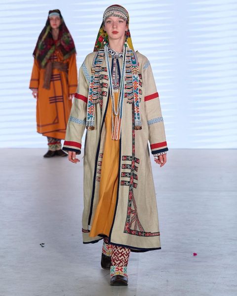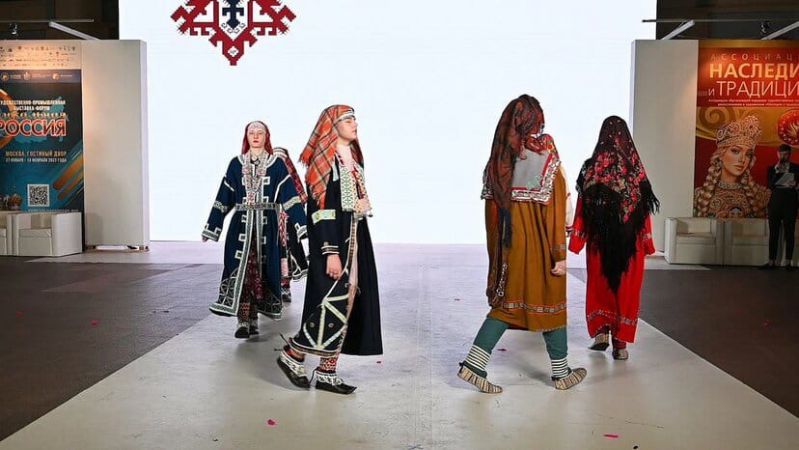 Показ коллекции костюмов «Голос Неба» открывал и закрывал неделю работы выставки в рамках специальных показов этнографических костюмов и коллекций традиционного искусства фестиваля «Этноподиум».