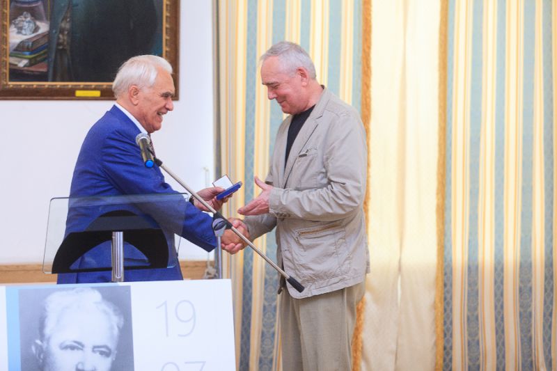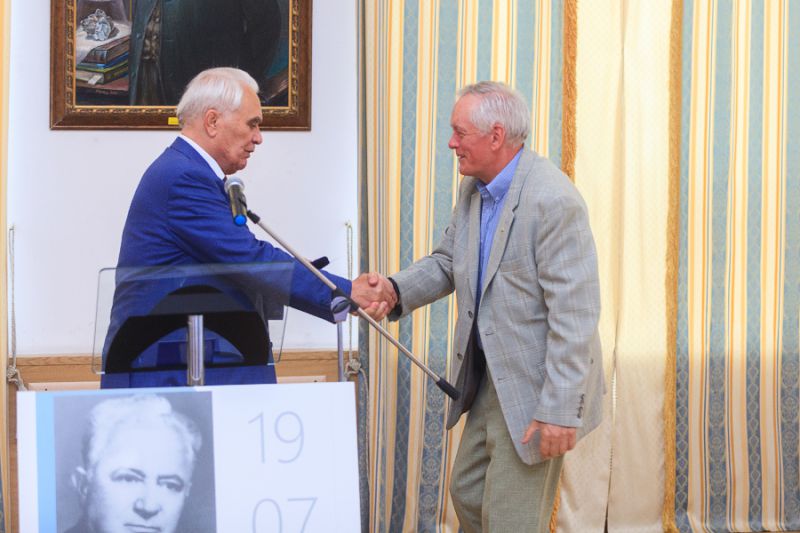 От имени Российской академии естественных наук Л.И. Твердохлебов наградил Г.И. Шмаля медалью Петра I "За заслуги в деле возрождения науки и экономики России". Награда вручена в честь знаменательной даты – 300-летия Российской нефтяной промышленности.