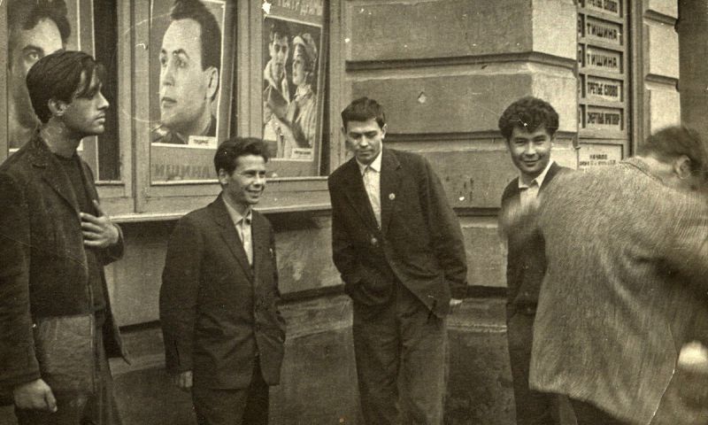 | Валентин Распутин (третий слева) и Александр Вампилов (четвертый слева). Фото из архива Музея В.Г. Распутина |