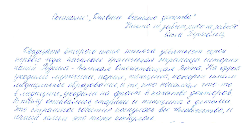 Ровно за месяц до юбилея Великой Победы на нашем портале открылась рубрика «Пишут дети…», подготовленная Общественной редакцией землячества и клубом «Сорокинцы». Школьники из Западной Сибири и Москвы вспоминают  своих бабушек, дедушек, родных и близких – участников Великой Отечественной войны, тружеников тыла. Мост из рукописей маленьких земляков продолжает расти. В адрес редакции поступают новые сочинения. Приглашаем и Ваших детей и внуков в нем поучаствовать! Наш тел.: (495) 798-95-72, адрес электронной почты: yulia977@yandex.ru
