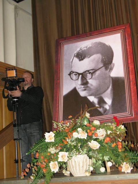 В культурном центре ГУВД Москвы, что на Новослободской, 47, царил исповедальный дух. Актовый зал был переполнен курянами. Правда, живущими теперь в Москве, и не без гордости величающих себя полноправным единством – Курским землячеством. Большинство из собравшихся не первой молодости, и, чаще всего, с полувековыми метелями жизни, однако с бойкими, веселыми и любознательными глазами. Способными внимать и новое. И, тем более, сокровенное. Заветное, из уст самого Свиридова: «Я родился в 1915 году, в городке Фатиж, что на Курской земле, - начал свое признание Георгий Васильевич, появившись в первом кадре фильма «Неизвестный Свиридов». - Отец мой, Василий Григорьевич, из крестьян, после Октябрьского переворота принял Советскую власть, быль коммунистом, занимал видную должность в уездном городке в Фатиже. Когда пришли с юга белые, скрывался в подвале.  Один человек донес об этом.  Отец попал в тюрьму, а после – под шашку отступающей добровольческой армии. Помню своего отца в гробу, с перевязанной нижней частью лица.  И сейчас его вижу. Мне тогда было 4 года.  Гражданская война разбросала весь наш род.  От него уже никого не осталось.