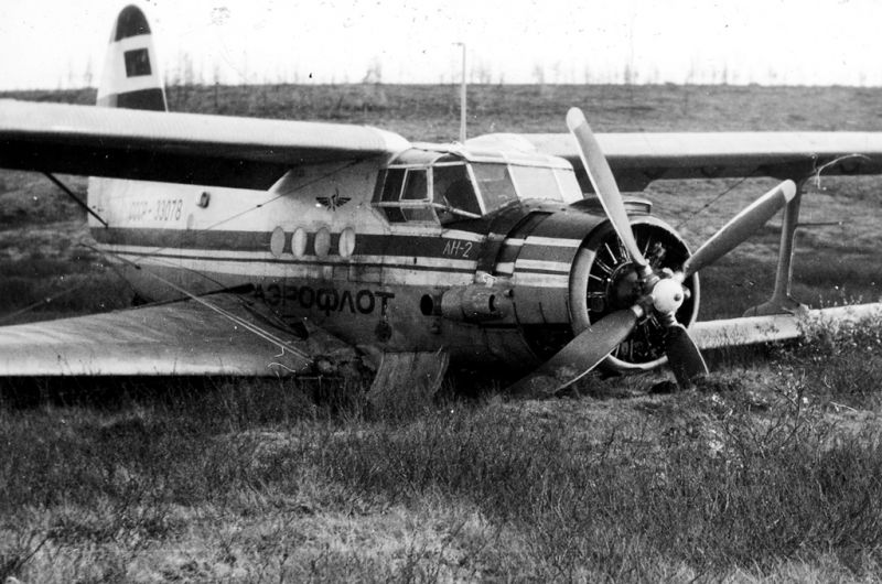 Самолёт Ан-26 (командир В.А.Устиченко) в простых метеоусловиях, но с боковым ветром порывами до 11 метров в секунду, перед приземлением уклонился от оси взлетно-посадочной полосы, приземлился на боковую полосу безопасности, которой практически не было, так как там находилось мелководное озеро. В результате самолёт зарылся в непромёрзший грунт, оборвал правую плоскость и развернул её вместе с гондолой и стойкой шасси вверх под углом 90 градусов, носовая часть повреждена, сломана передняя стойка шасси. Фюзеляж находится в воде. Экипаж - 5 человек, невредим. Собрав все материалы по форме согласно «Руководству по расследованию лётных происшествий», передал первичное донесение радиограммой через Салехард в управление. Как потом выяснилось, оператор радиобюро Салехарда вместо того, чтобы дословно передать радиограмму в Тюмень, сократила ее самовольно до минимума и передала только факт происшествия. В управлении ничего не поймут, возмущаются, вынуждены были направить другой самолёт в Харасавэй для выяснения обстоятельств. Недоразумение было устранено и расследовано. В результате, чтобы происшествие не переросло в аварию, все части самолёта были отправлены на завод для восстановления, а происшествие решили считать поломкой.
