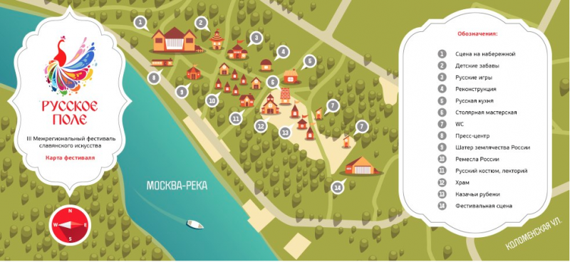 На фестивале развернется ярмарка ремесел и промыслов, в течение всего дня будут работать творческие мастерские, где научат и кузнечному, и гончарному делу. На площадках традиционных русских игр и забав пройдут соревнования и конкурсы, отдельная анимационная площадка будет ждать детей. Будут работать площадки «Русской кухни», где развернется фестиваль окрошки. Но одними из самых зрелищных станут «Казачьи рубежи России», где гости фестиваля смогут увидеть выступления мастер - джигитов мирового уровня, оседлать коня и научиться стрелять из лука.