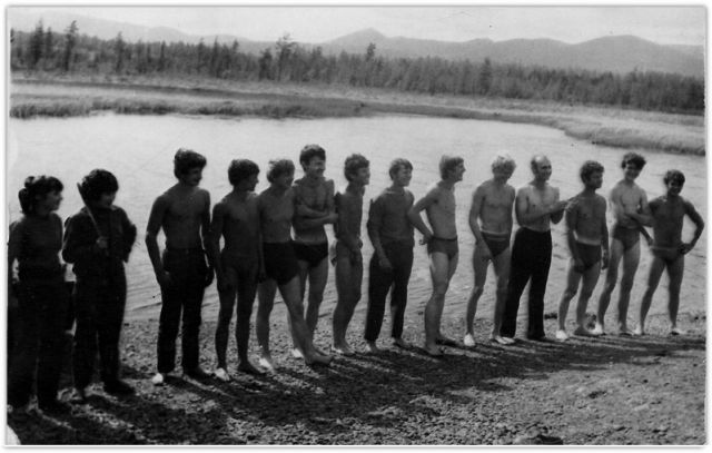 За все время у нас был лишь один полноценный выходной в День строителя. Начался он со спортивных соревнований. Участвовали команды 6 стройотрядов. Итог – достаточно успешное выступление, так как турнир по футболу мы выиграли. Но в волейбол проиграли. Затем – традиционное посвящение в бойцы ССО на Колыме, обязательно с Нептуном и его помощниками и непременным атрибутом – кружкой, содержимое которой отвечает лишь одному рецепту: все, что горит, с различными, в зависимости от разыгравшейся фантазии, добавками. После возвращения в лагерь – установка памятного знака на вершине сопки. И ощущение чего-то нереального: ты стоишь, а под тобой – облака. Красота необыкновенная!