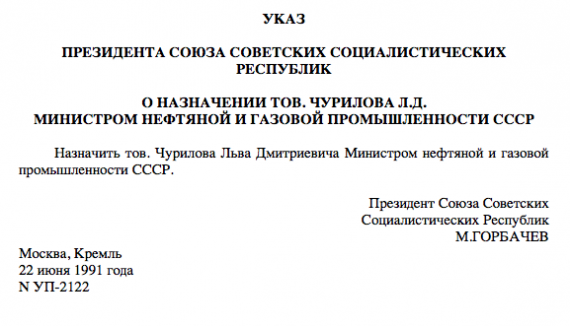 В объединении "Лангепаснефтегаз" Л.Д.Чурилов заметил способности руководителя службы автоматизации производства Юрия Константиновича Шафраника. По оценке Льва Дмитриевича, Юрий Константинович просматривался на большую должность, мог быть руководителем объединения. Начальник Управления кадров и учебных заведений Иван Дмитриевич Пустовойтов посоветовал Льву Дмитриевичу (в то время начальнику Управления по добыче нефти Министерства) переговорить с Ю.К.Шафраником о его возможном выдвижении на должность руководителеля нефтедобывающего предприятия. (При условии получения им специальности по разработке нефтяных и газовых месторождений, то есть перспективе стать горным инженером: тогда он будет иметь право вести горные работы, то есть быть руководителем нефтедобывающего предприятия.) Этот совет Шафраник принял и закончил институт. Он был назначен начальником объединения "Лангепаснефтегаз". Впоследствии был Министром топлива и энергетики Российской Федерации.