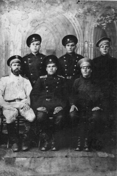 | Слево направо: сидят Илларион Павлович и Николай Павлович Стрельцовы, 1916 год |