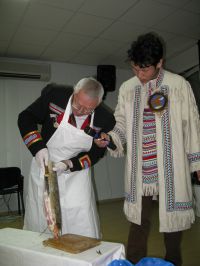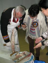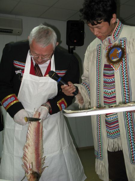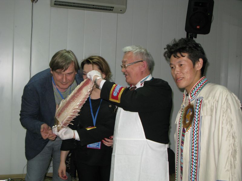 Гастрономические приоритеты и табу участников, чей вкус порядком пострадал из-за быстрого, полного химии, питания последних десятилетий, наводнившего прилавки супермаркетов, рушились на глазах, не выдерживая сути происходящего, отраженного в традиционном слогане «чисто, честно, вкусно». «Путь» (суп из ламинарии) и «мос» (сладкий студень на нерпичьем жире) нивхов; ржаная «веппская калитка»с картофелем и пшенной кашей; эвенкийские лепешка на оленьем молоке, йогурт из него же с дикой ягодой, кровяная колбаса и «няк» – копченая щука;кухня шорцев – чай из чаги с лесными травами, конфеты из черемухи, варенье из калины, талакан; строганина из сига эвенков, так любимая многими северянами, и «монтак» чукчей и эскимосов (вареная кожа и сало кита) с салатом, ставшие для большинства чем-то, сравнимым с гастрономическим путешествием на другую планету.