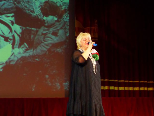 Когда в заключении концерта прозвучала в моем исполнении ее песня "Тост за Россию", весь зал ...встал! Вместе с ветеранами аплодировали артистам и наши земляки во главе с В.М.Стешенко и Т.К.Афанасьевой. На память об этом торжестве у нас остались фото.