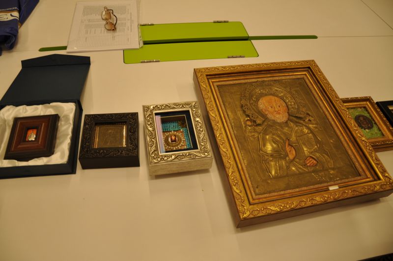 Затем наступила очередь Алексея Викторовича Василишина. Его зажигательное, насыщенное юмором повествование о своей судьбе больше часа держало нас, слушателей, в напряжении. Трудности, которые часто встречались на жизненном пути талантливого человека, и те усилия, которые приходилось ему прикладывать, чтобы преодолеть их, подвластны не всем, а только сильным духом и помыслами людям. Очень понравился рассказ Алексея Викторовича и о том, как он в первый раз прикоснулся к очень серьёзному и ответственному ремеслу – написанию икон. Видно, на самом деле у него есть ангел-хранитель, который медленно, но верно подталкивал к такому решению. Редко, когда звёзды в одно и то же время сходятся в одном месте. А для Алексея Викторовича они сошлись. Некрещеный, сознательный атеист, свято верящий в идеалы коммунистов – гонителей православной церкви, и вдруг в одночасье становится крещёным и благословлённым двумя Патриархами на столь тонкий Промысел Божий. Невероятно, но факт.
