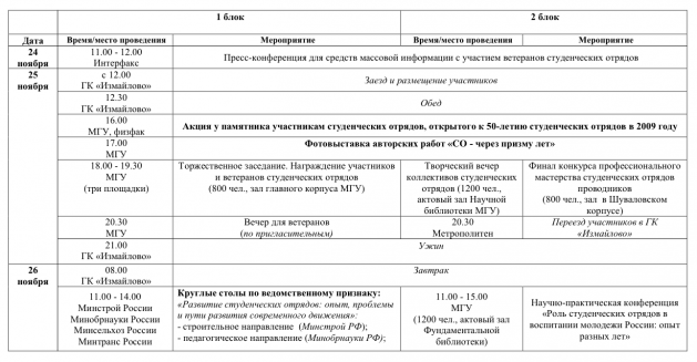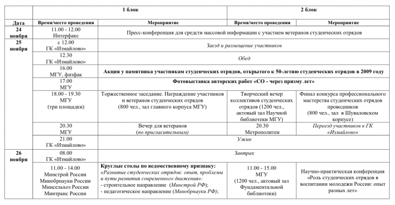 Программа Всероссийского слета студенческих отрядов,