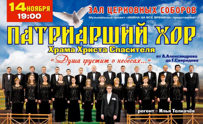 По приглашению нашего доброго друга, продюсера проекта «Имена на все времена», певца и ведущего Ивана Ильичева (в прошлом году он был гостем нашего клуба как биограф незабываемой певицы Анны Герман) мы посетили концерт «Душа грустит о небесах...» Патриаршего хора Храма Христа Спасителя.
