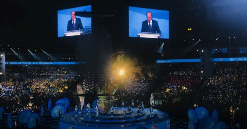 Красочная церемония была посвящена ключевым проблемам современного мира. Президент России Владимир Путин отметил, что фестивальное братство поможет воплотить в жизнь самые смелые и самые добрые мечты и помыслы участников мероприятия.
