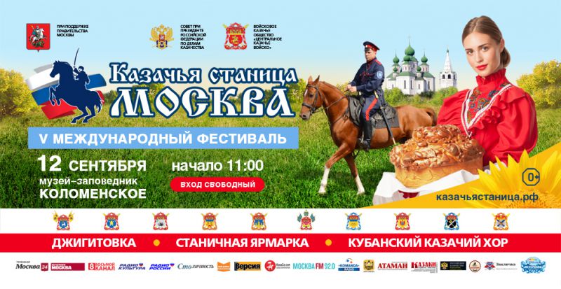 12 сентября 2015 года, в субботу, на территории московского музея-заповедника «Коломенское» с 11.00 до 20.00 пройдет V Международный фестиваль «Казачья станица Москва».