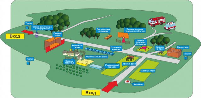 На пятом юбилейном фестивале «Казачья станица Москва» с 11.00 до 20.00 будут работать 12 площадок: «Главная сцена», «Походный Храм», «Площадка «Казачья история: традиции и обычаи», «Выставочная площадка», «Детская площадка «Казачата», «Конный двор», «Казачье подворье», «Казачьи игры», «Казачий спас», «Ремесленный городок», «Станичная ярмарка», «Аллея казачьей кухни».